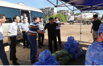 烈日下的八一大桥项目现场一片繁忙景象,工人们有的在支模、有的在焊接钢筋、有的在浇筑砼,一切都井然有序,忙而不乱。屯溪区区委书记江善良一行一到现场,就将一件件防暑降温慰问品递到在施工的工人们手中,并嘱咐在高温下施工的操作人员要多注意休息、及时补充水分和营养,按项目部要求合理安排工作时间,避免中午高温时间段施工,同时要求项目部积极做好防暑降温工作,保障施工一线工人的生命安全。充分体现了屯溪区委、区政府等领导对我集团公司的一片深情厚谊和关怀。