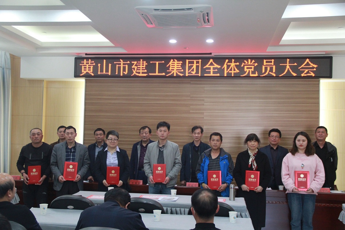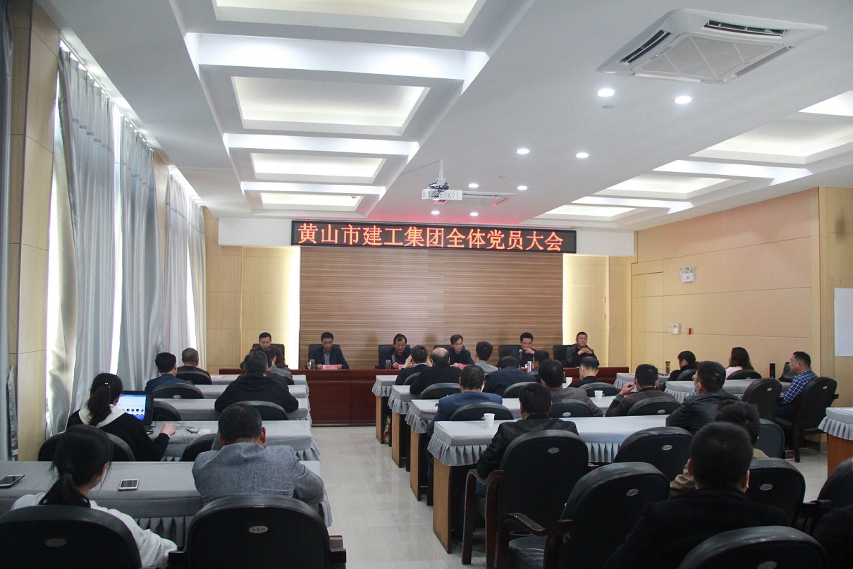 黄山市建工集团党总支于2020年4月16日下午在集团公司11楼会议室召开全体党员大会。参加会议的有市级党建指导员康建平、集团党总支班子成员及全体党员,共56名。会议由党总支副书记汪明星主持。