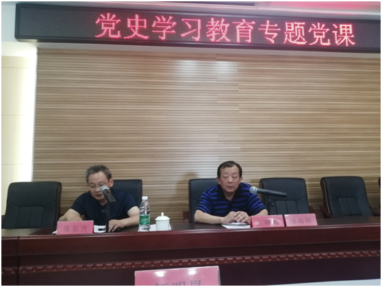 2021.7.13下午市住建局党组成员、总工吴东升同志在百忙中抽时间来我公司为全体党员上了一堂党史学习教育专题党课,党课从学习习近平中国特色社会主义思想、毫不动摇坚持走中国特色社会主义道路、毫不动摇坚持中国共产党的领导、毫不动摇鼓励、支持、引导非公有制经济发展等四个方面进行了系统梳理和解读、剖析、阐释,宣讲全面系统、精准深刻、深入浅出,为我们学习领会党的百年历史和汲取奋进力量提供了一把“金钥匙”。