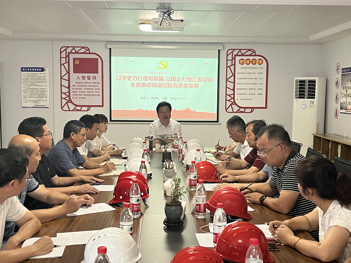 2022年7月12日上午,黄山城投集团党委副书记、董事、总裁黄世稳同志冒着酷暑来到黄山建工集团共建合作单位文澜轩“工地党校”为我们讲授专题党课,参加党课的有城投集团工程部总监汪润兰同志、党群工作室副主任王蕴寒同志,城建控股、建工集团总支班子成员、党员代表40余人。