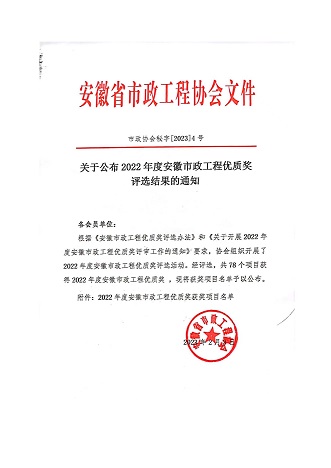根据《安徽市政工程优质奖评选办法》和《关于开展2022年度安徽市政工程优质奖评审工作的通知》要求,安徽省市政工程协会组织开展了2022年度安徽市政工程优质奖评选活动。KY平台-KY(中国)一站式服务平台