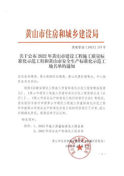 按照《安徽省建设工程施工质量标准化示范工程管理指导意见》、《黄山市建设工程施工质量标准化示范工程管理办法(试行)》、《黄山市安全生产标准化工地评选暂行办法》等规定。
