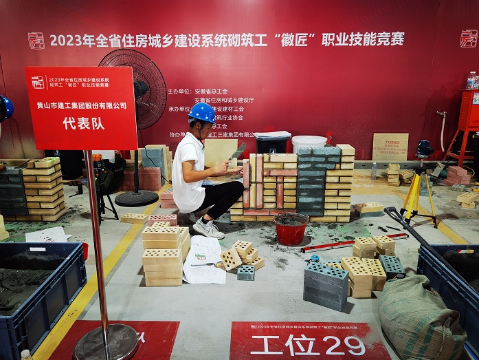 此次竞赛,分为理论考试和实操两大部分,来自全省不同地市的31支代表队展开激烈角逐。理论考试环节,考察参赛选手们对建筑行业的专业知识储备;实操环节,参赛选手们则需要在240分钟内,使用特定工具,按照技术规范要求,完成砌筑任务。黄山建工集团股份有限公司作为黄山市唯一一支参赛队伍,参赛选手项平同志在公司的高度重视和大力支持下,代表黄山市参赛。比赛现场,他认真审阅比赛题目,抄平、放线、切砖、砌砖、勾缝各道工序有条不紊的施展,充分展示了精湛的技术赛出了风格、赛出了水平。
