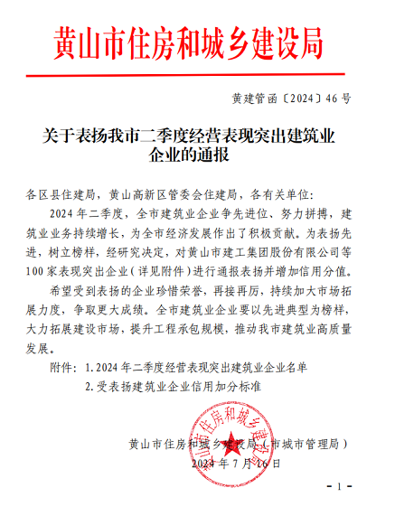 长期以来,黄山建工集团依托丰富的项目经验,持续推动业务范围的拓展与深化,将先进的管理理念融入企业运营的各个环节,显著提升了工作效率和项目质量,凭借一丝不苟、脚踏实地的行事风格,赢得了业界的广泛认可与赞誉。展望未来,黄山建工集团将继续坚守“质量第一、信誉至上”的经营宗旨,秉承“全员重质量,管理标准化,工程创精品,追求无止境”的质量方针,充分发挥集团资源整合优势,加强与外部市场的合作与交流,以服务为导向,以市场为中心,积极开展各类项目的合作洽谈工作,进一步拓展建设市场,扩大工程承包规模,在服务社会的同时实现企业发展持续,为推动我市建筑业的高质量发展贡献更多力量。